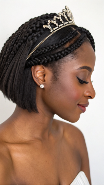 A bob with a braided crown is a creative and elegant hairstyle for black women. This style features a bob with a braided crown that adds a regal and sophisticated touch. It’s perfect for weddings or special occasions.