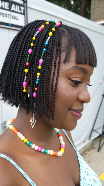 Use colorful beads that complement your outfit or personality. This hairstyle is a great way to add a pop of color to your look.