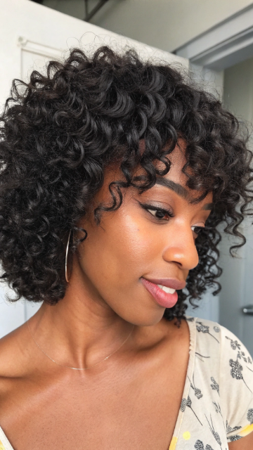 A bob with curly bangs is a playful and stylish option for black women. The curly bangs add a soft and youthful touch to the hairstyle, making it perfect for framing your face. This style works well with natural curls.