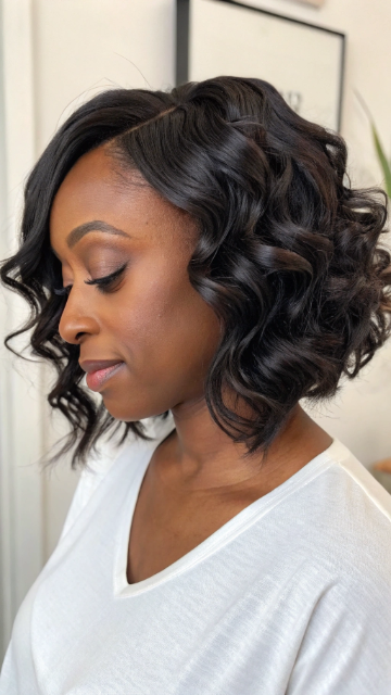 A wavy bob is a soft and romantic hairstyle for black women. This style features loose waves that add texture and movement to your hair. It’s perfect for creating a relaxed and effortless look.