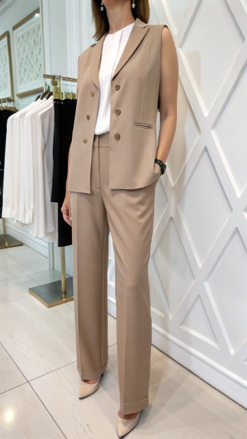 This outfit is ideal for making a strong impression in meetings or presentations. The vest adds structure, while the straight-leg pants keep it modern. Finish with pointed-toe heels or loafers.
