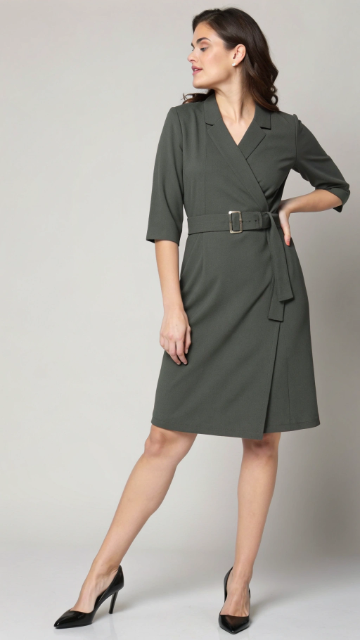This outfit is great for both office settings and after-work events. The wrap design adds femininity, while the belt enhances the overall look. Pair with heels or flats depending on the occasion.
