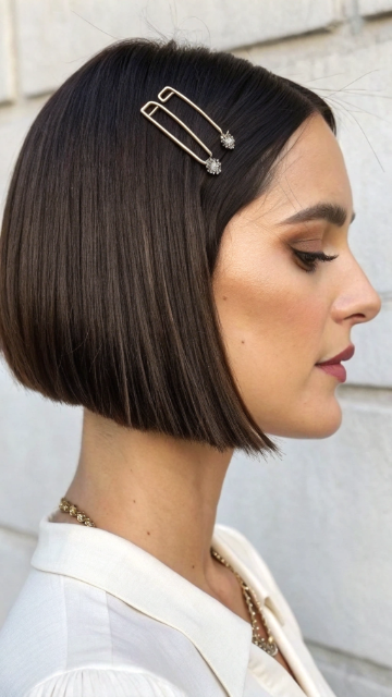 Add a middle part or side part to change the vibe of this hairstyle. The blunt bob works well with straight hair and can be accessorized with hairpins or headbands. It’s a versatile choice for both casual and formal occasions.