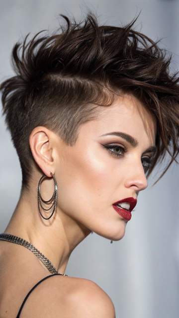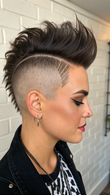 Pair this style with bold makeup or accessories to highlight the mohawk. The short mohawk works well for all hair types and can be styled with or without bangs. It’s a standout choice for anyone looking to make a statement.