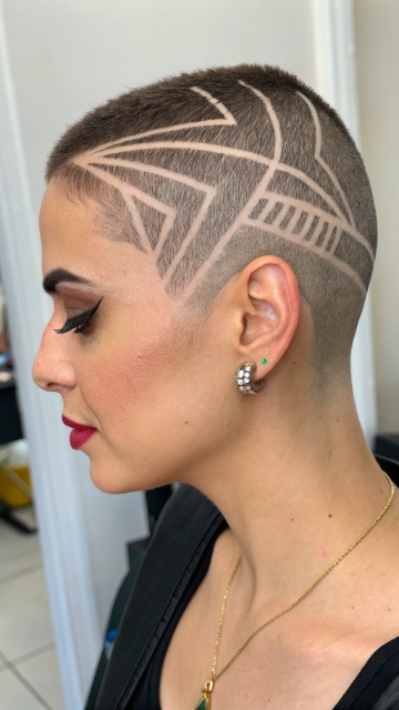 Pair this style with bold makeup or accessories to highlight the design. The buzz cut is low-maintenance and works well for all hair types. It’s a standout choice for anyone looking to make a statement.