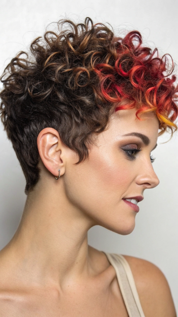 Curly Pixie with Highlights