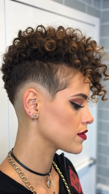 Pair this style with bold makeup or accessories to highlight the contrast. The curly undercut works well for all face shapes and can be styled with or without bangs. It’s a standout choice for anyone looking to turn heads.