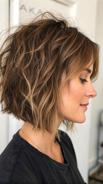 This style works best with wavy or slightly curly hair. Use a texturizing spray to enhance the layers and add volume. The shaggy bob is perfect for adding movement and personality to your hair.