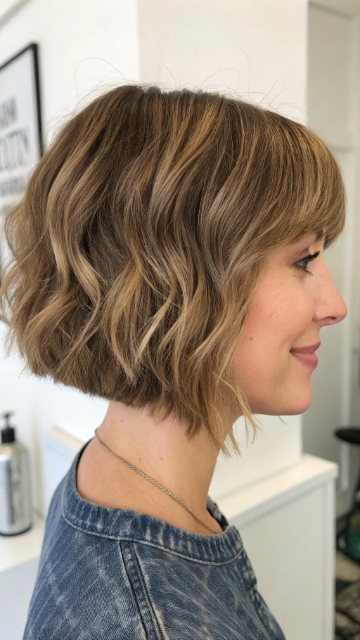 Wavy Bob with Curtain Bangs