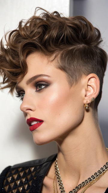 The wavy pixie with an undercut is a bold and edgy hairstyle that’s perfect for those who want to stand out. This cut features soft waves on top and closely cropped sides, creating a striking and modern look. It’s ideal for showcasing your confidence and individuality.