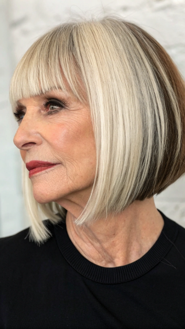 A layered bob with blunt bangs is a bold and modern option for women over 70. The layers add texture and movement, while the blunt bangs create a striking contrast. This style is perfect for those who want a chic and edgy look.