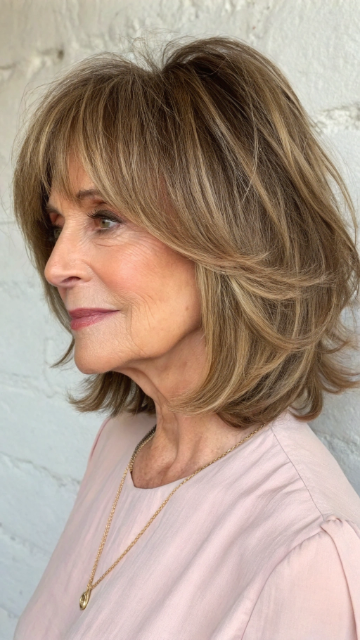 Shoulder-length layered hair is a versatile and flattering choice for women over 70. The layers add movement and body, making your hair look lively and youthful. This length is perfect for those who want to keep their hair manageable but still enjoy some length.