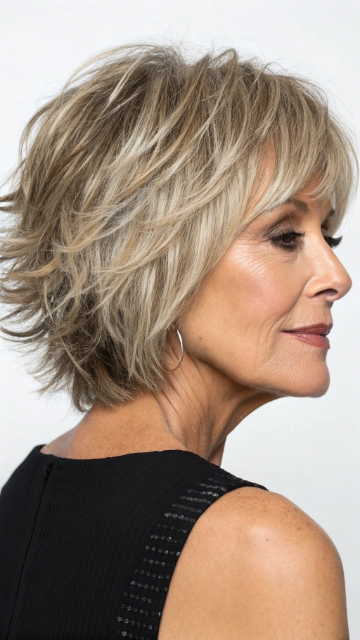 A layered shag with wispy layers is a fun and youthful option for women over 70. The wispy layers add lightness and movement, while the shaggy layers create texture and volume. This style is perfect for those who want a carefree and playful look.