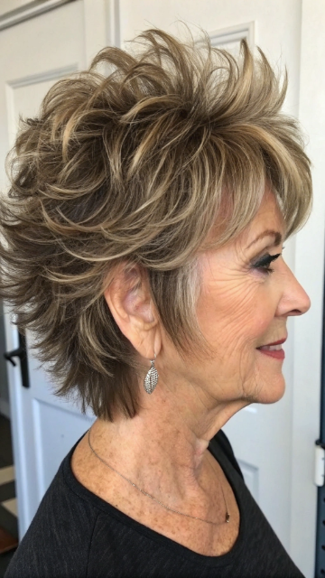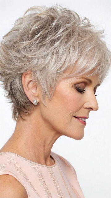 A layered pixie with a feathered top is a soft and feminine option for women over 70. The feathered layers add lightness and movement, creating a delicate and youthful look. This style is perfect for those who want a low-maintenance yet elegant haircut.