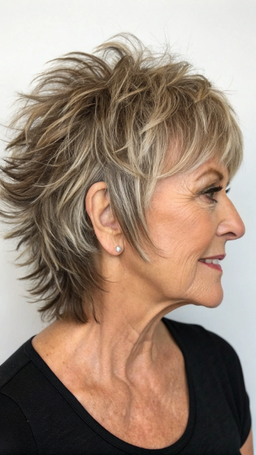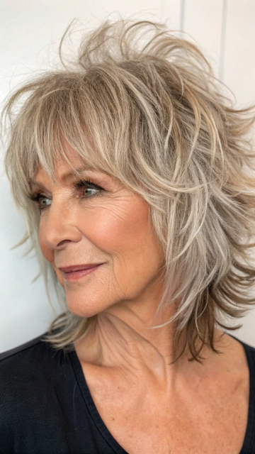 A layered shag with choppy ends is a fun and edgy option for women over 70. The choppy ends add texture and movement, while the layers create volume and body. This style is perfect for those who want a modern and youthful look.