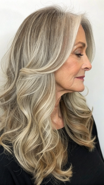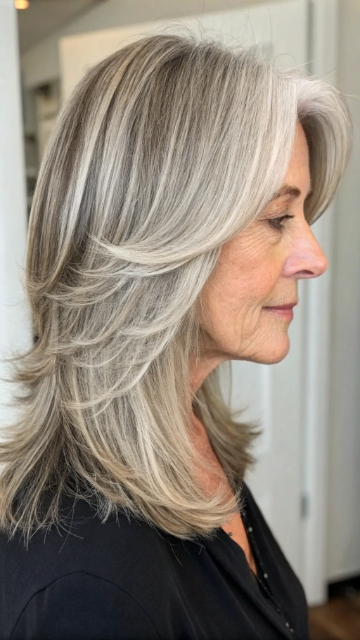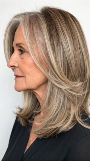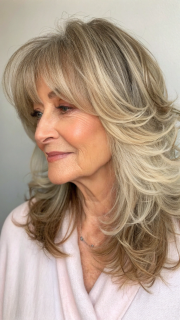 Long layers with face-framing highlights are a stunning choice for women over 70. The layers add movement and body, while the highlights brighten your face and enhance your features. This style is perfect for those who want a glamorous and youthful look.