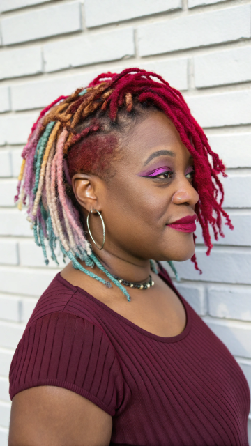Colored short locs make a bold fashion statement. Vibrant hues like platinum, burgundy or pastels transform your look instantly. The shorter length makes color maintenance easier than long locs.
