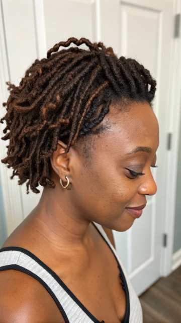 Small hairpins and lightweight gels help secure the style. The shorter length prevents heaviness and scalp strain. You can create multiple variations from one set of locs.