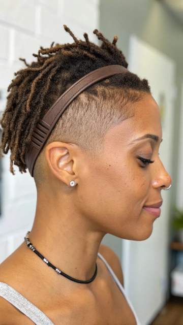 Accessories transform short locs into eye-catching styles. Gold cuffs, colorful beads or silk wraps add personality. The shorter length makes accessories more noticeable and easier to manage.