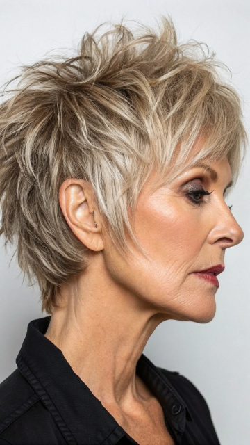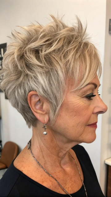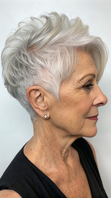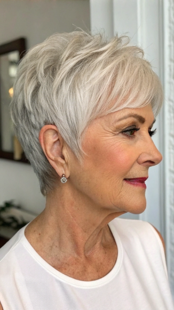The wispy pixie is a softer, more feminine take on the classic pixie cut. It features wispy, feathery layers that frame the face delicately. This cut is perfect for women over 70 who want a lightweight, airy look.