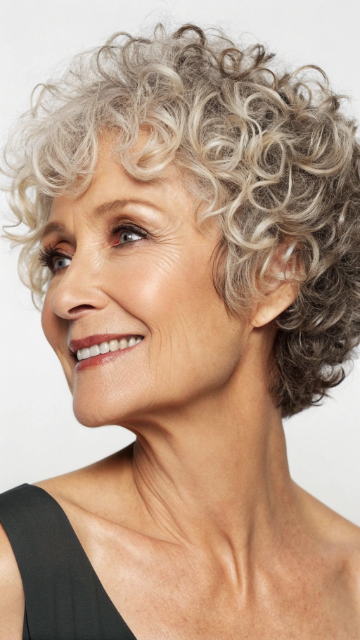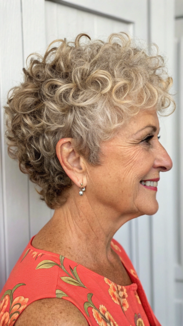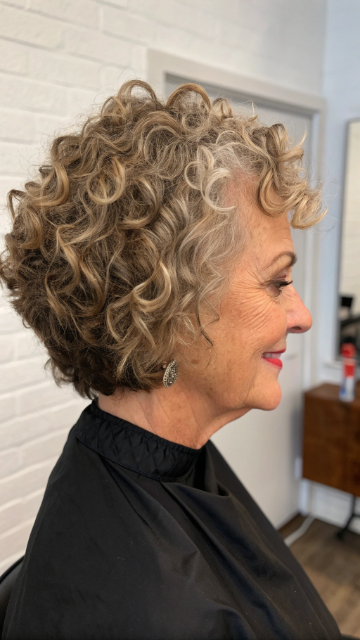 The curly bob is a playful and stylish choice for women over 70 with natural curls. It’s short, bouncy, and full of life. This cut enhances your curls and adds volume to your look.