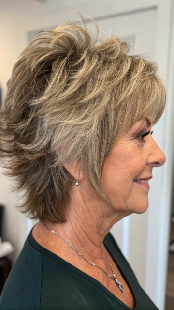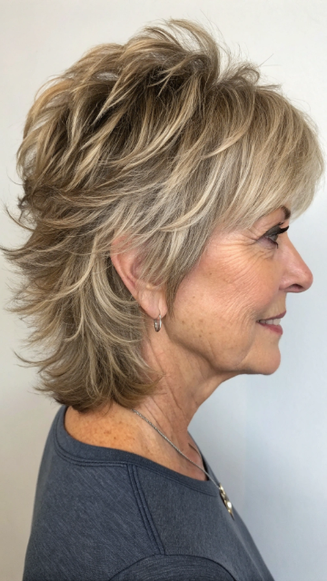 The side-swept shag is a chic and flattering choice for women over 70. It features longer bangs that are swept to one side. This cut is perfect for women who want a soft, feminine look.