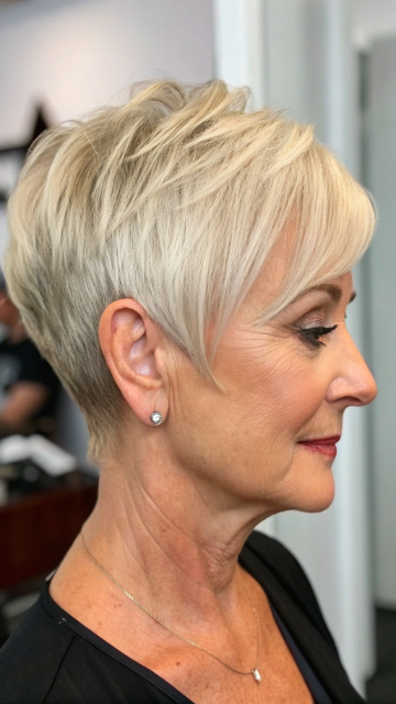 Pair your pixie cut with soft, side-swept bangs for a flattering frame around your face. Use a light styling product to add definition and hold. This style is perfect for those who want a fresh, youthful look without much effort.