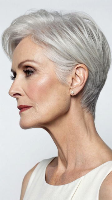 The sleek pixie is a polished and elegant choice for women over 70. It’s short, smooth, and perfectly tailored. This cut is ideal for women who want a sophisticated, no-fuss style.