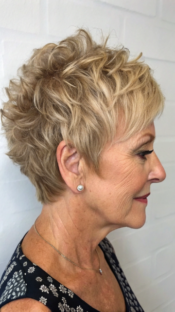 he wavy pixie is a soft and romantic choice for women over 70. It features loose waves that add movement and volume. This cut is perfect for women with medium to thick hair.