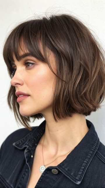 This effortless style has messy layers and curtain bangs that blend naturally. The tousled look adds volume and movement, perfect for everyday wear. It’s a low-maintenance option that still looks stylish.