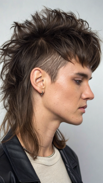 The curtain bangs soften the forehead while the mullet adds edge. A light-hold gel keeps the layers defined without stiffness. This style suits thick and coarse hair best.