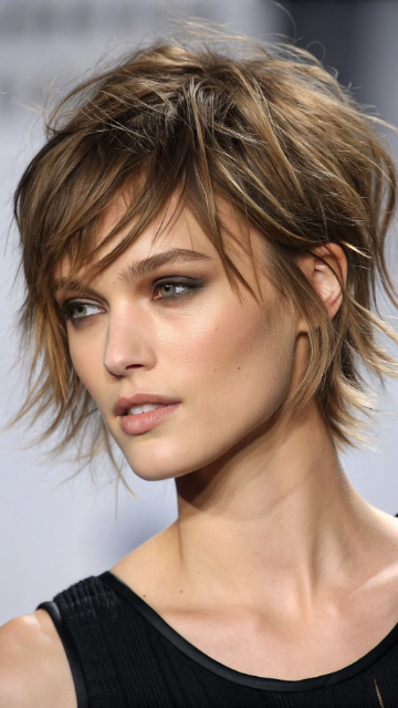 The short length makes styling quick and easy. A matte pomade enhances the piece-y texture for a modern finish. This cut flatters oval and heart-shaped faces the most.