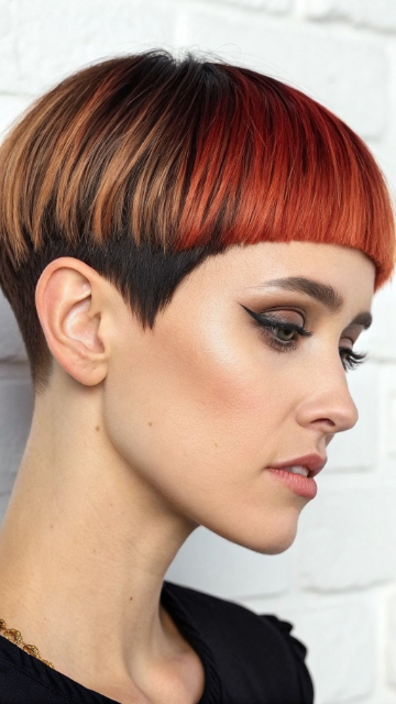 This playful take pairs super short baby bangs with longer curtain layers. The contrast creates an eye-catching, fashion-forward look. It’s perfect for those who want to make a bold style statement.