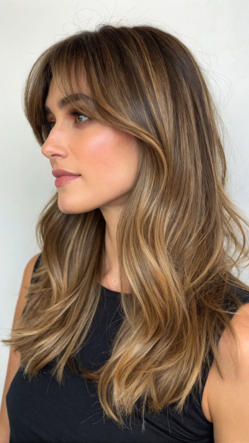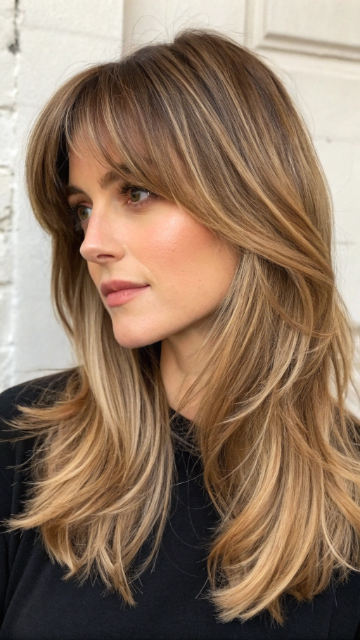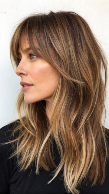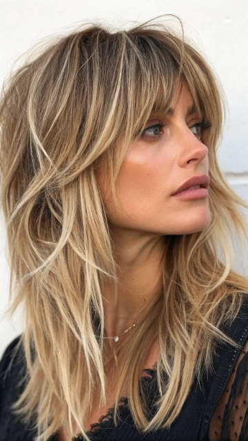 This timeless style features choppy layers and soft curtain bangs that blend seamlessly. The wispy ends add movement, making it ideal for fine or thick hair. It’s a versatile cut that suits both casual and formal settings.